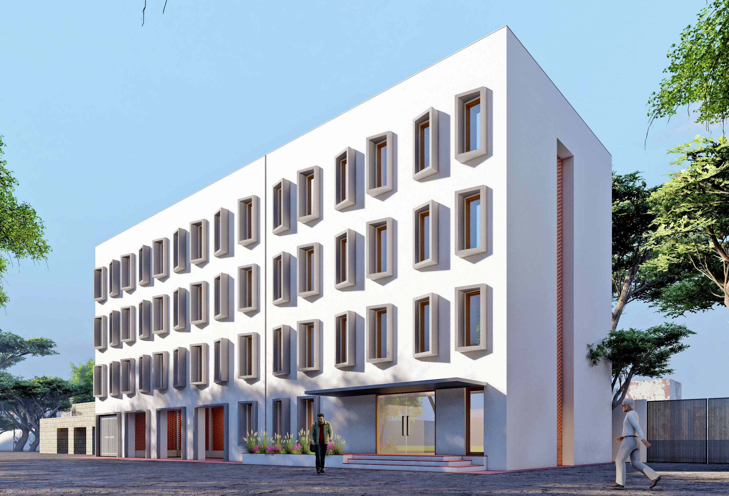Located near Lahori Gate in New Delhi, this project reinterprets the barrack typology for the Railway Protection Force through a language of strength, order, and simplicity.