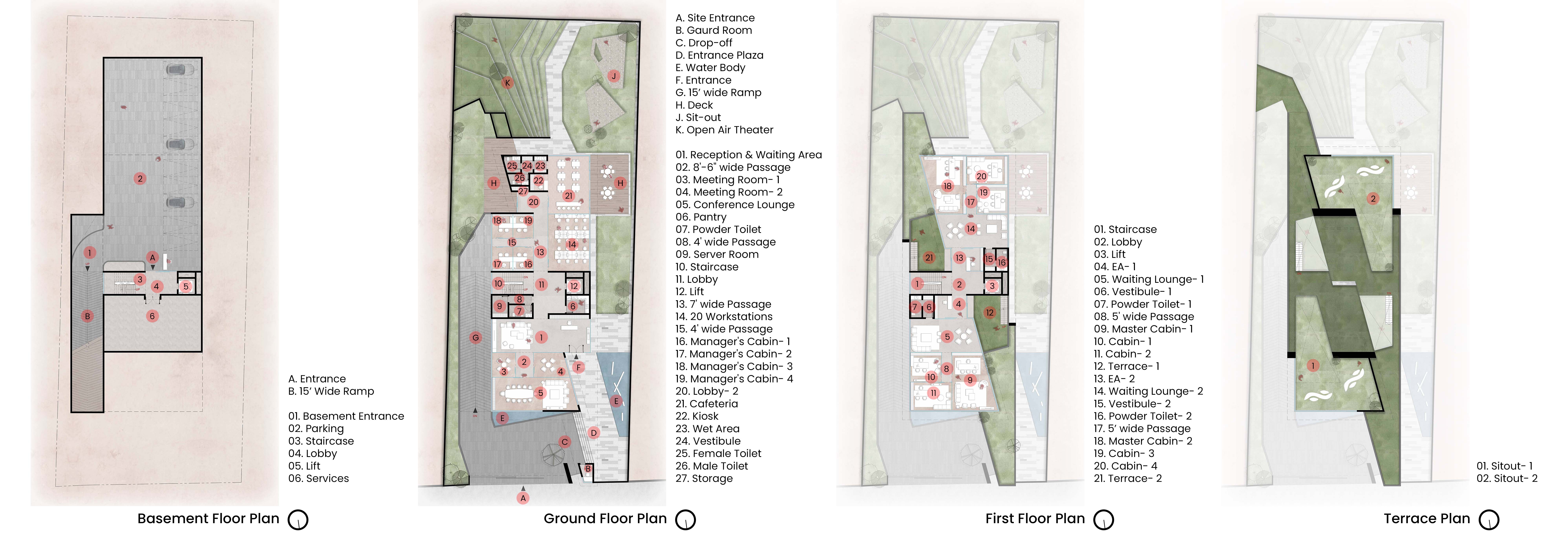The result is a workspace that balances geometry with spontaneity where circulation, light, and landscape converge to foster creativity and connection.