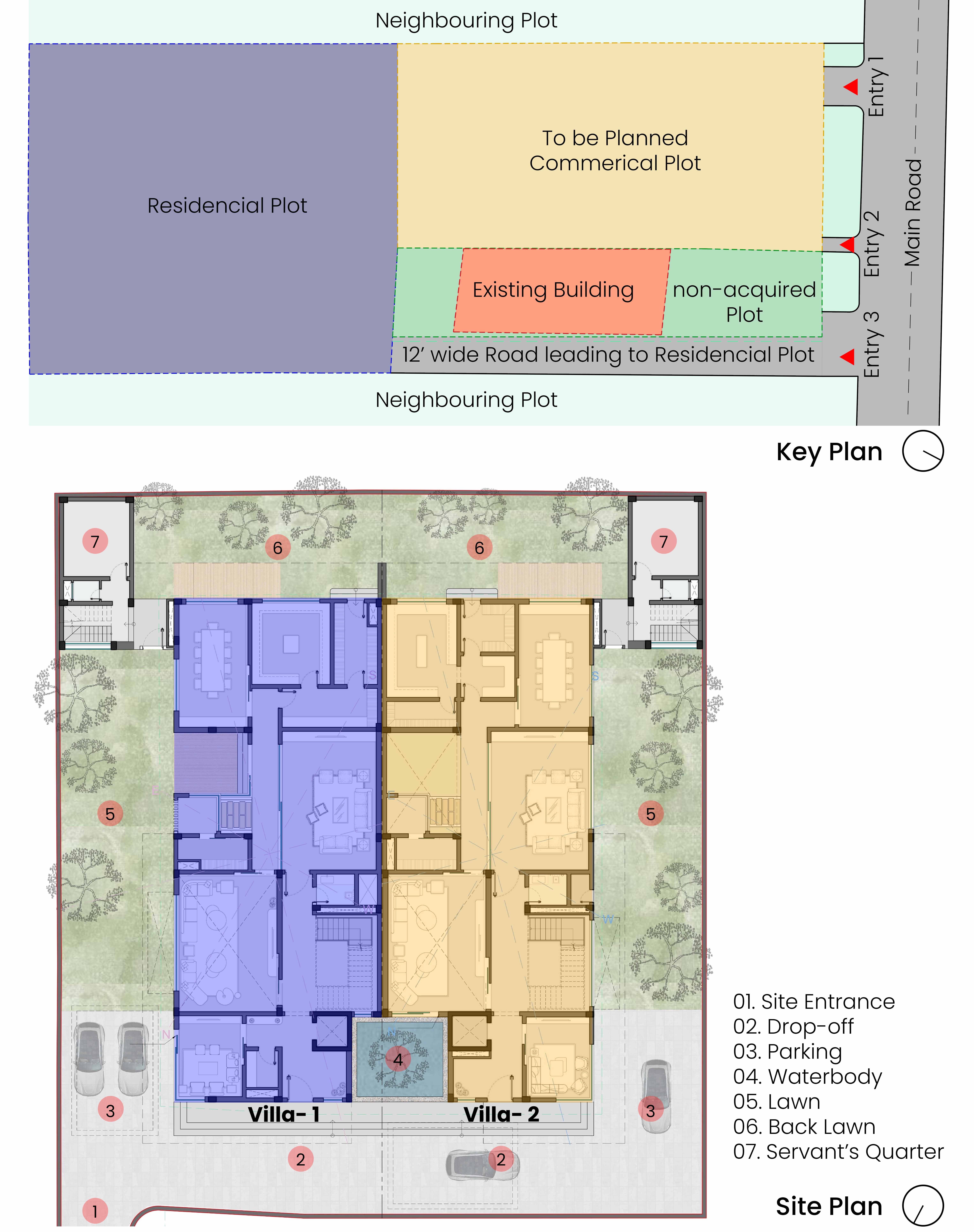 The plot, jointly owned by two brothers, was planned with foresight to allow future subdivision while functioning cohesively in the present.