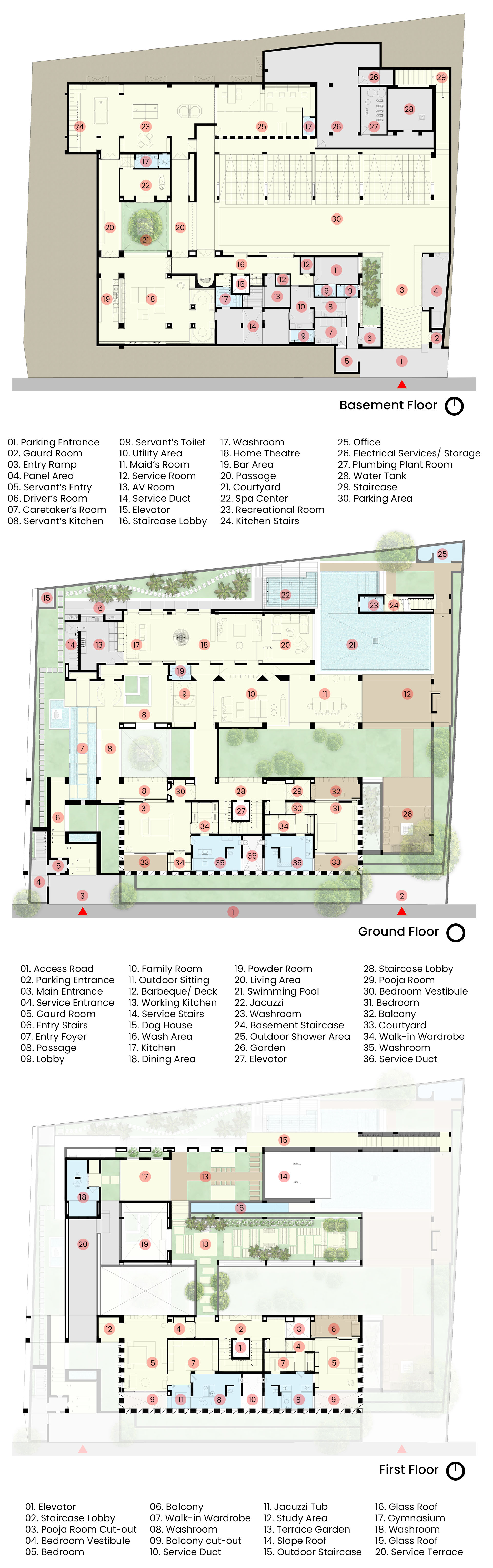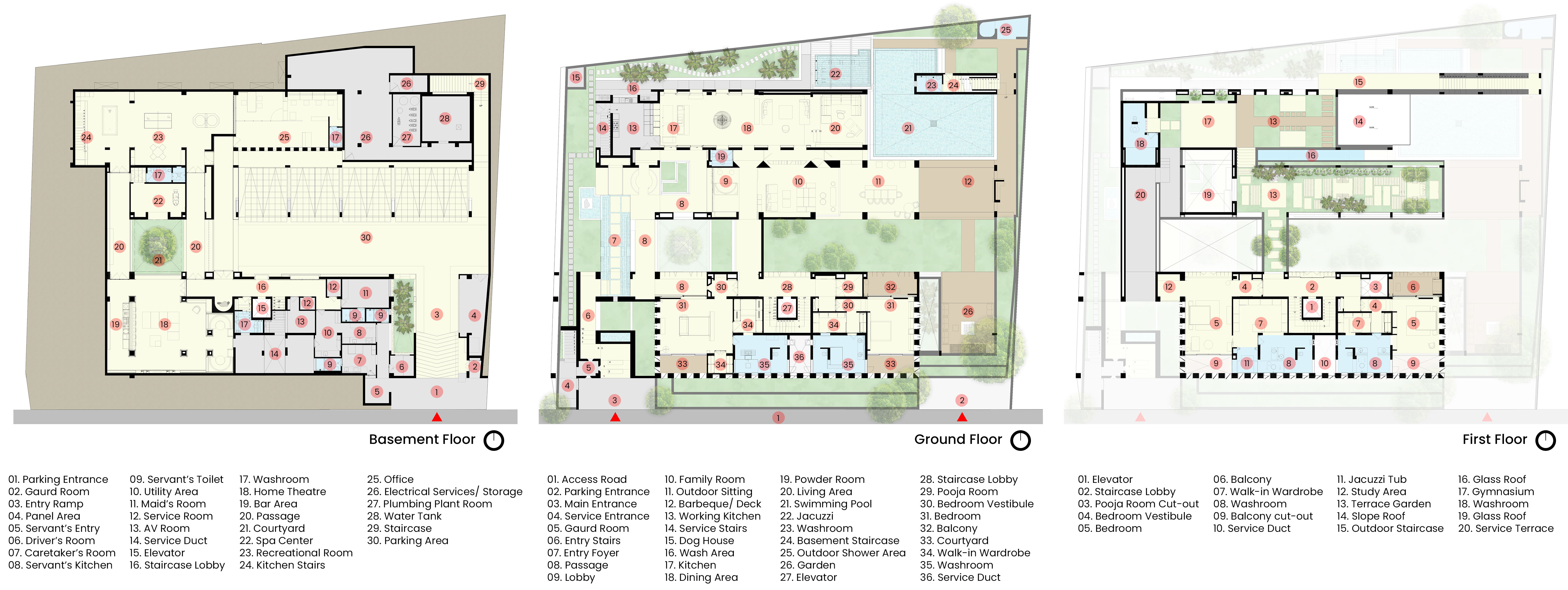 A subtle site slope enables smooth ground-to-basement access, while interiors balance the rawness of concrete with minimal detailing and soft tonal finishes.